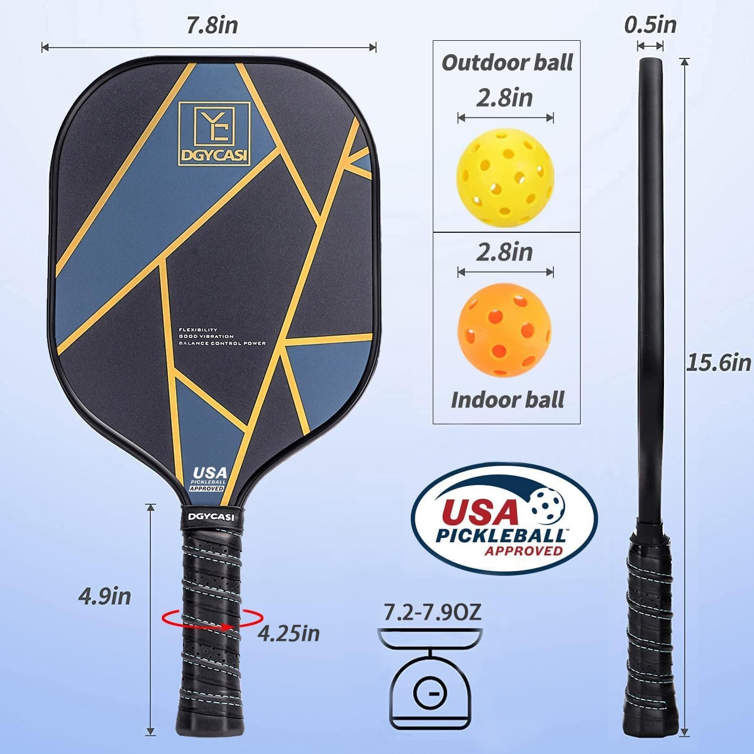 At YC DGYCASI, we bring you championship-level performance in every swing. Our paddles are crafted with a lightweight honeycomb polymer core and a premium fiberglass surface, striking the perfect balance between power and control. The ergonomic sweat-proof grip ensures lasting comfort, while the edge guard provides superior durability match after match. With each set including two golden paddles, indoor and outdoor balls, and a premium carry bag, you’re always ready to step onto the court. Trusted by thousands of players worldwide, YC DGYCASI is where quality meets confidence.